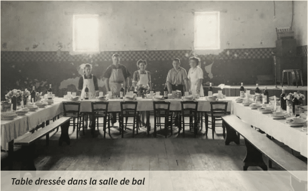 Si la salle de bal de St Corneille pouvait parler, elle dirait qu’elle a vu naître de nombreux couples, dont certains ont célébré leur mariage dans cette même salle. En effet, celle-ci accueillait des repas et banquets à la demande des familles et associations. Du temps de Mr et Mme Macon, des cuisiniers ou cuisinières étaient appelées en renfort pour préparer les repas, et des jeunes filles pour le service.